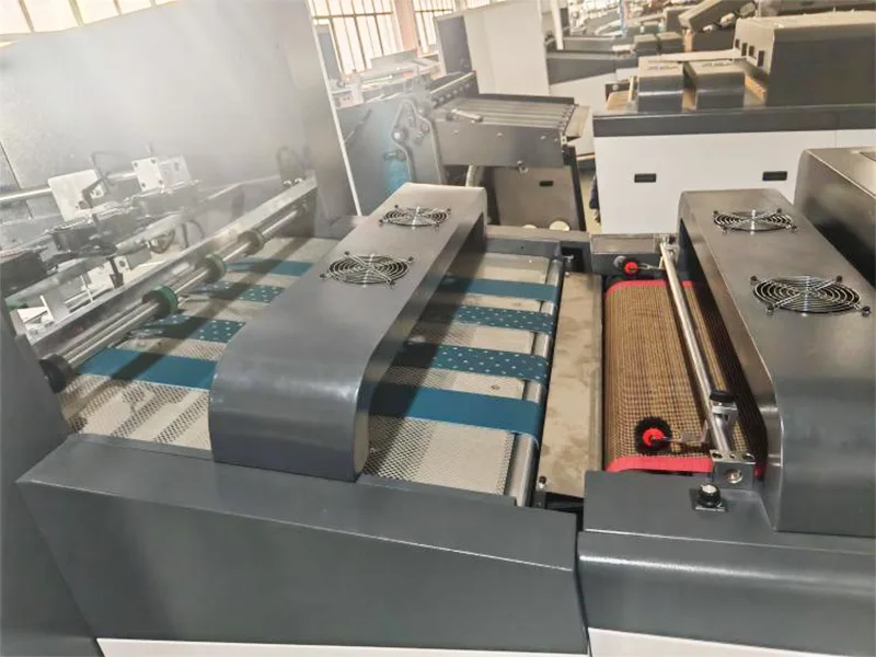 - UV ఎండబెట్టడం పరికరాలు మూడు UV మెర్క్యురీ దీపాలను స్వీకరిస్తాయి, ఇది UV వార్నిష్ను త్వరగా పటిష్టం చేస్తుంది.