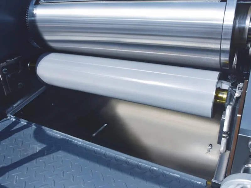3. దిగుమతి చేసుకున్న మెటీరియల్ మీటరింగ్ రోలర్లు, ఫార్వర్డ్ మరియు రివర్స్ రొటేషన్ రెండింటిలోనూ సర్దుబాటు చేయగల చమురు మందం.